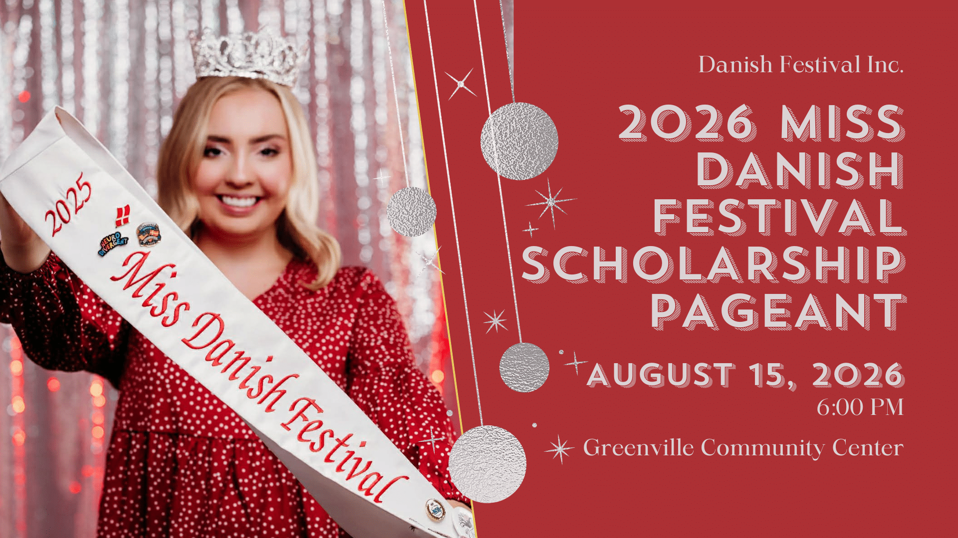 Our 2026 Pageant will be held on Saturday, August 15, 2026 at 6:00PM at the Greenville Community Center.